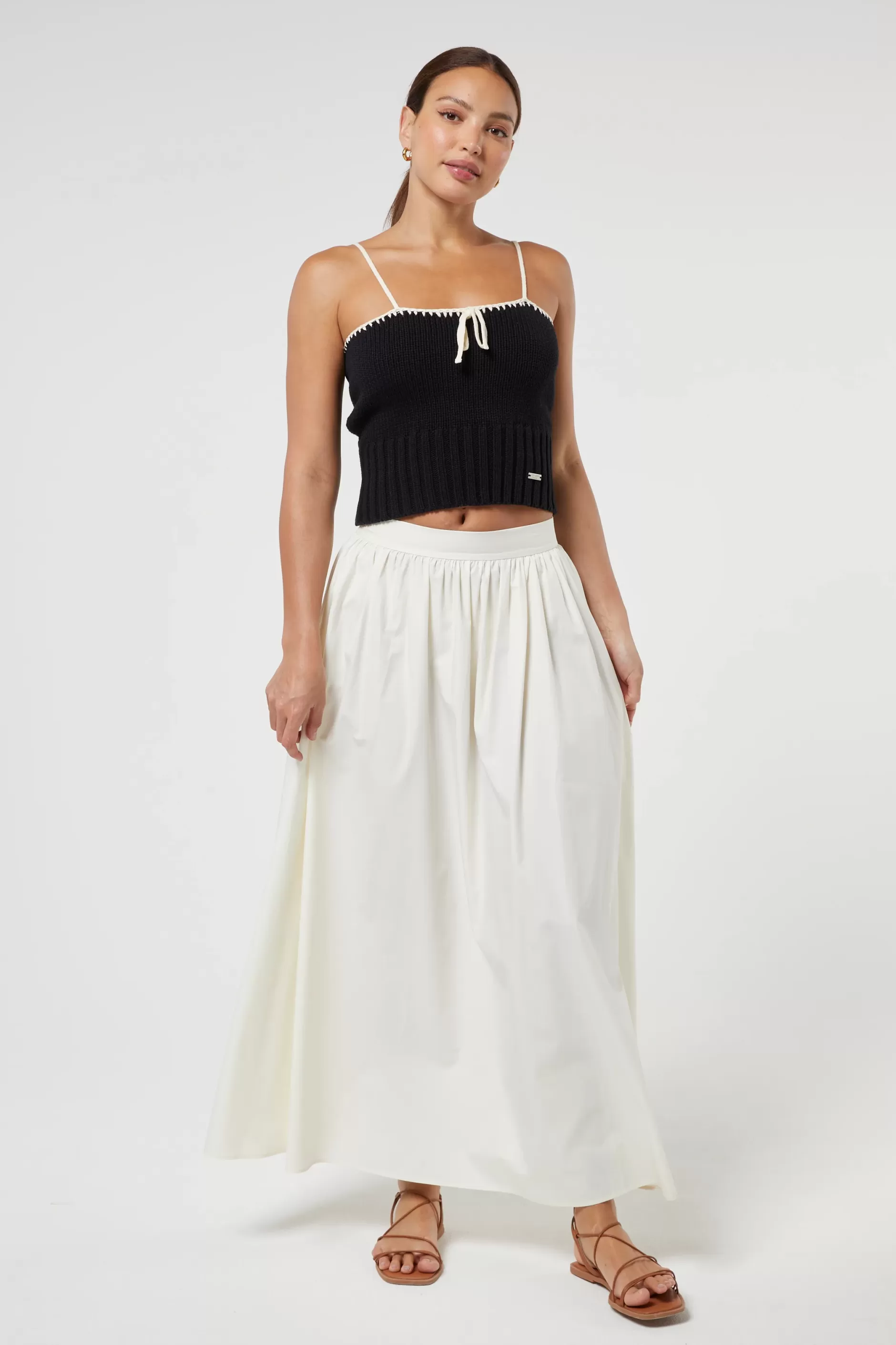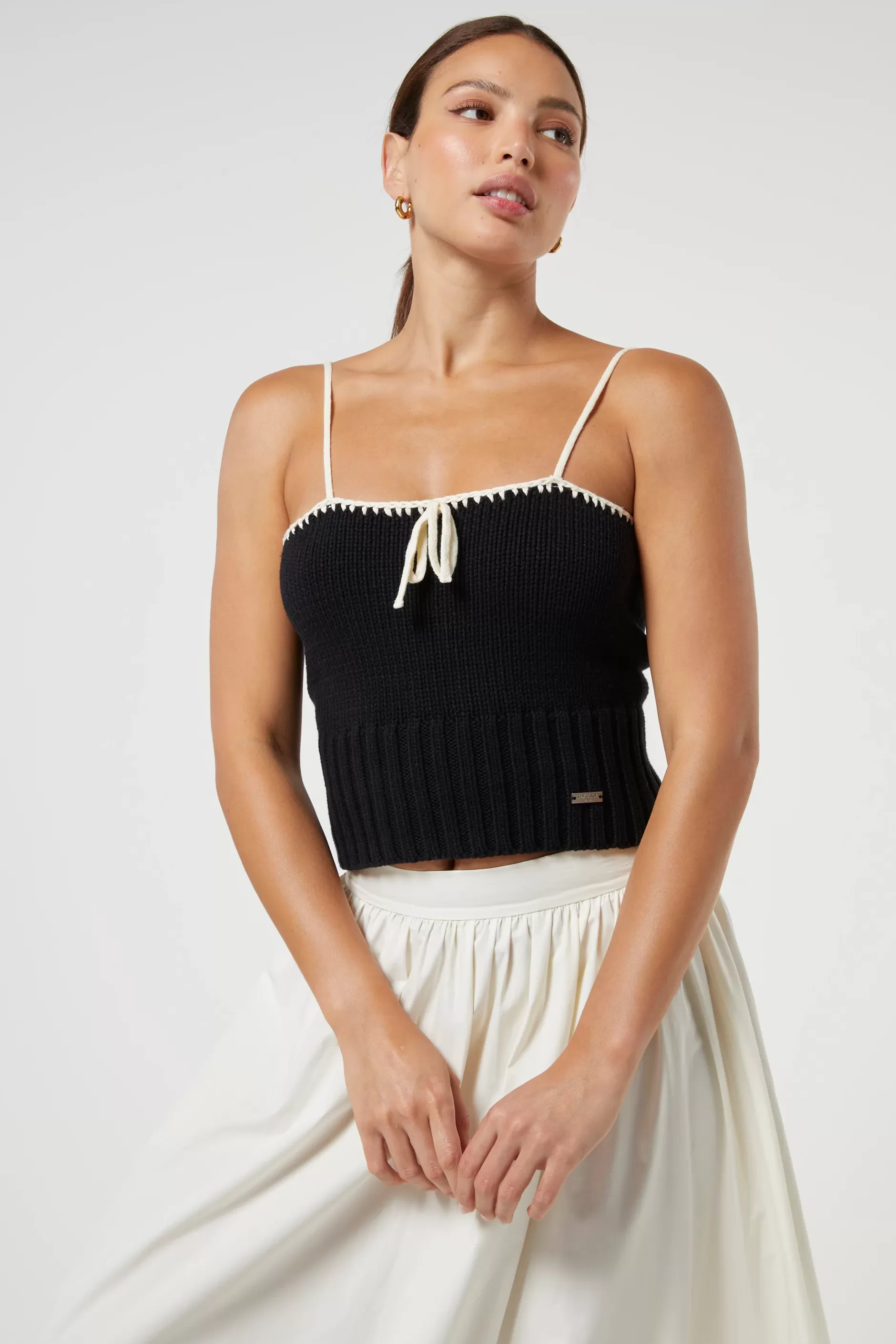 Made with 100% cotton and a tie detailing at the front, this Jaya top is a must-have addition to your wardrobe. The strap ribbed top is soft, flattering and a must have in all wardrobes.